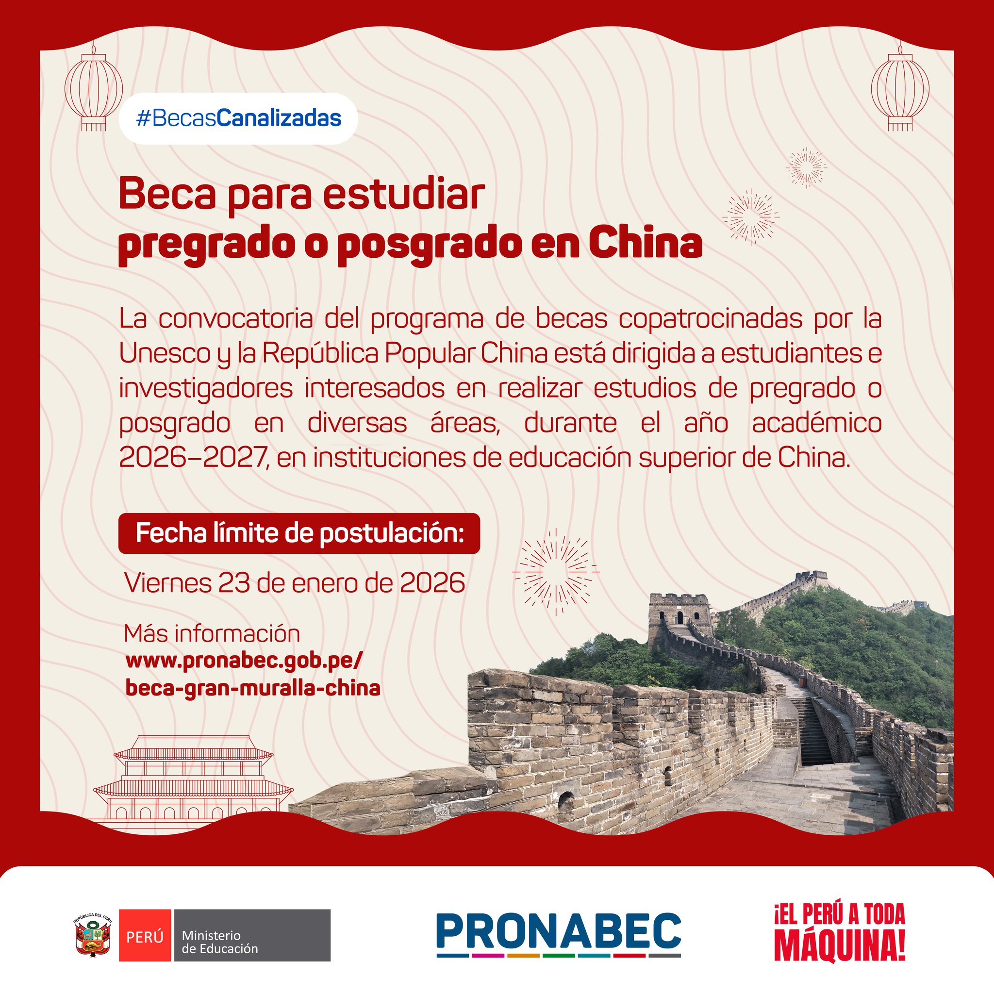 Estas becas copatrocinadas por la UNESCO y la República Popular China brindan acceso a programas de alto nivel en universidades de prestigio, fortaleciendo la formación de futuros líderes e investigadores peruanos con proyección internacional.