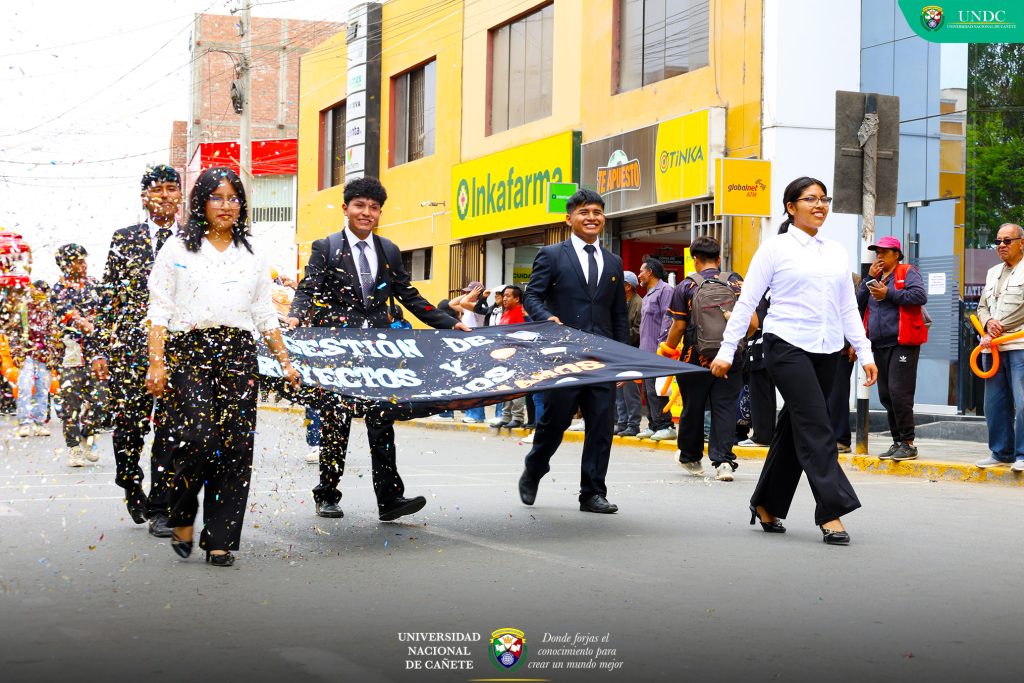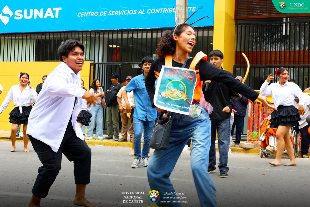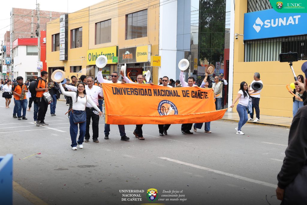 La Universidad Nacional de Cañete (UNDC) llevó a cabo el Pasacalle Cultural UNDC 2025: “Tradición, Saber y Orgullo Universitario”, actividad realizada en el marco de las celebraciones por su XVI aniversario institucional, congregando a autoridades, docentes, estudiantes y personal administrativo en un multitudinario recorrido por las principales calles de la ciudad.