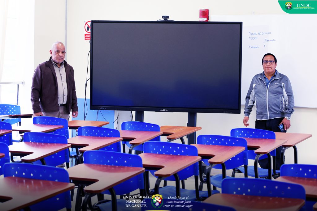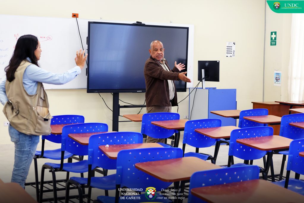 La Universidad Nacional de Cañete (UNDC) dio un nuevo paso en el fortalecimiento de su oferta académica. Esta mañana, el Presidente de la Comisión Organizadora, Dr. Mauro Ramírez Herrera, acompañado del Dr. Manuel Morales Alberto, Decano de la Facultad de Ciencias Empresariales y del personal de Servicios Generales, supervisó la infraestructura destinada al funcionamiento de la recientemente creada Escuela Profesional de Derecho y Ciencias Políticas.